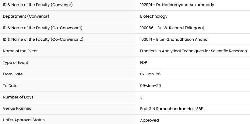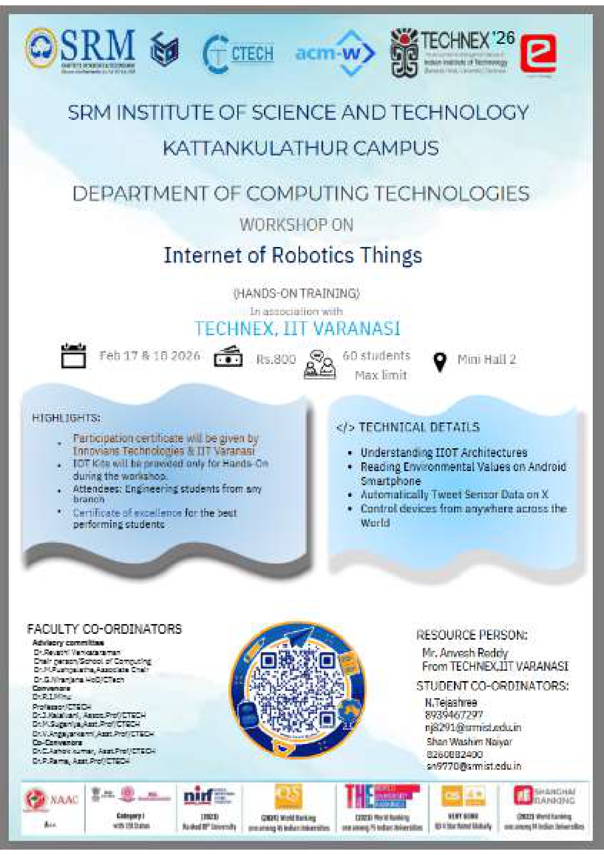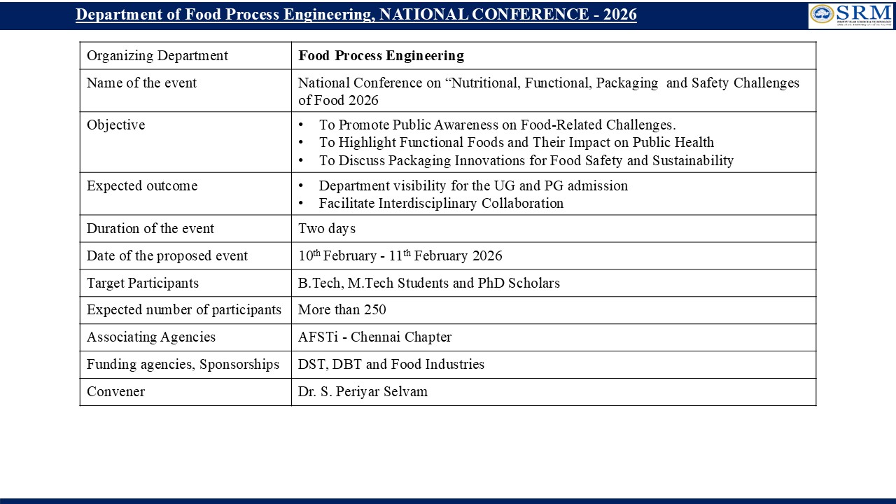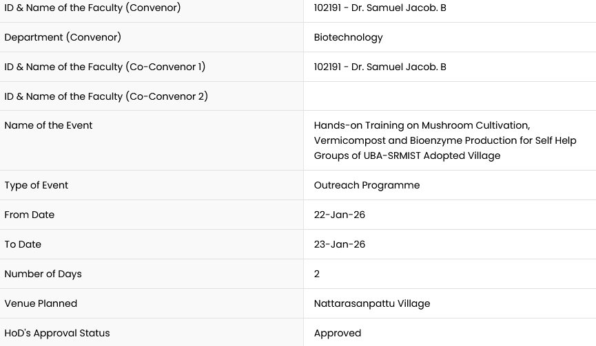 ID & Name of the Faculty (Convenor) 100064 - Dr.T.Anju Mobile no : 9841050010 Email ID : anjut@srmist.edu.in