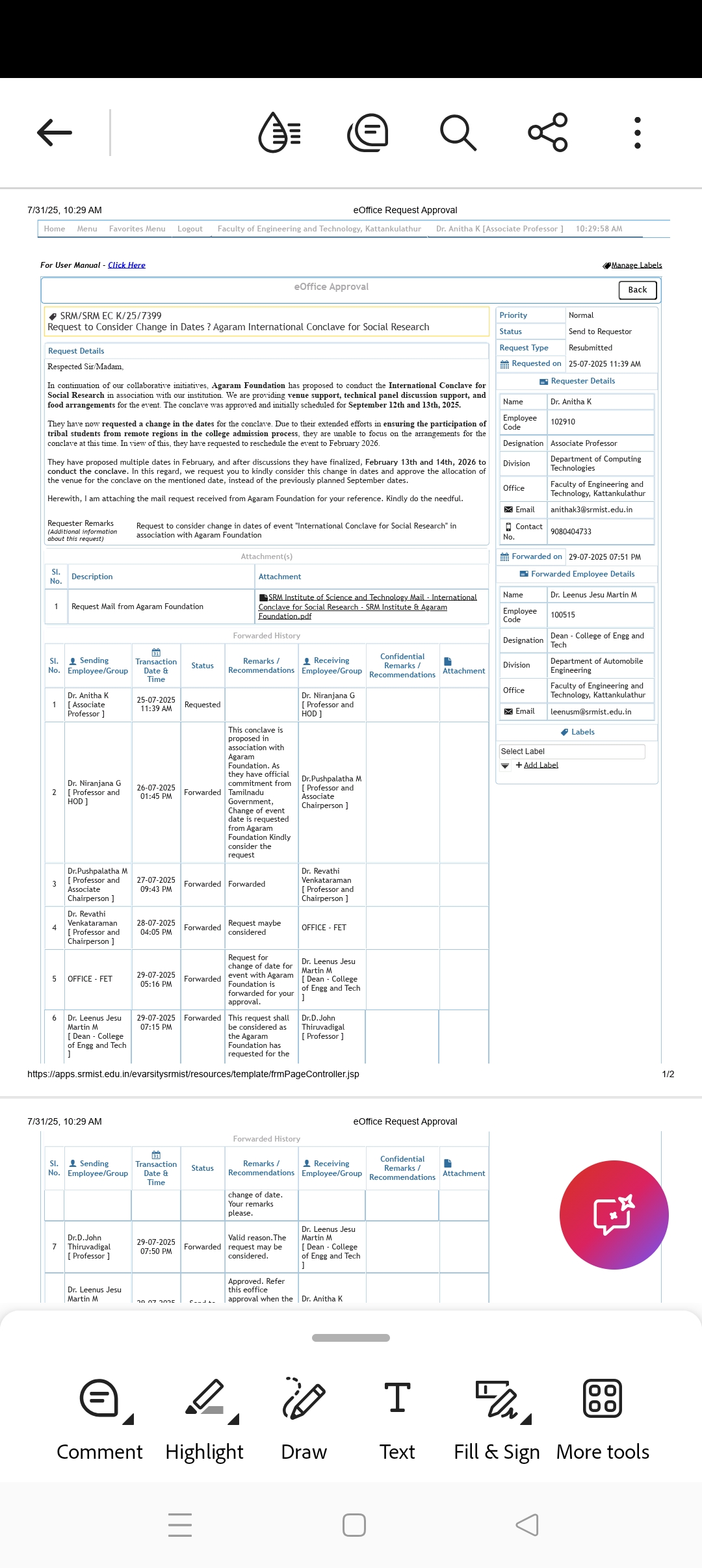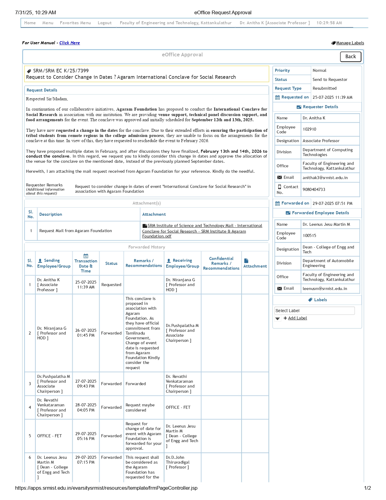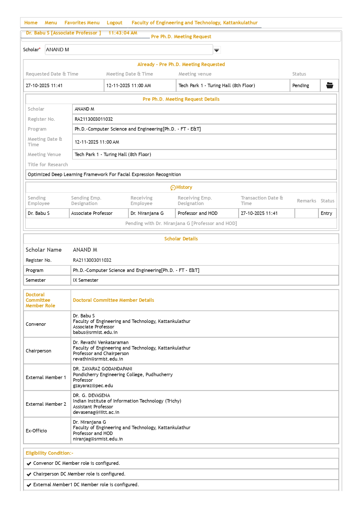 ID & Name of the Faculty (Convenor) 100064 - Dr.T.Anju Mobile no : 9841050010 Email ID : anjut@srmist.edu.in