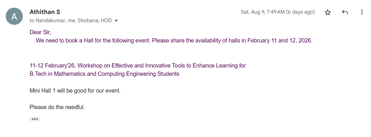 Located At: Mech B- Block, 1st Floor