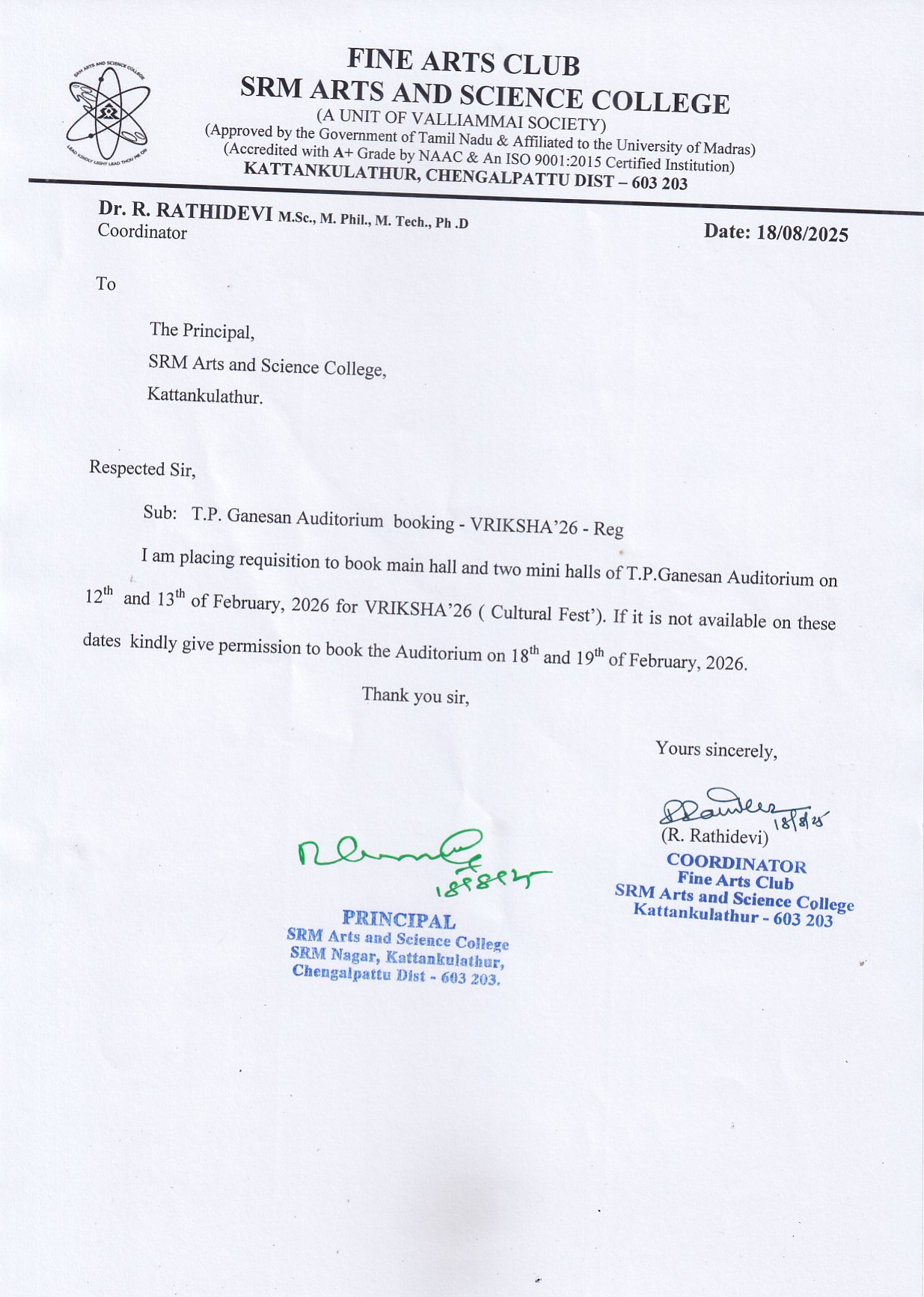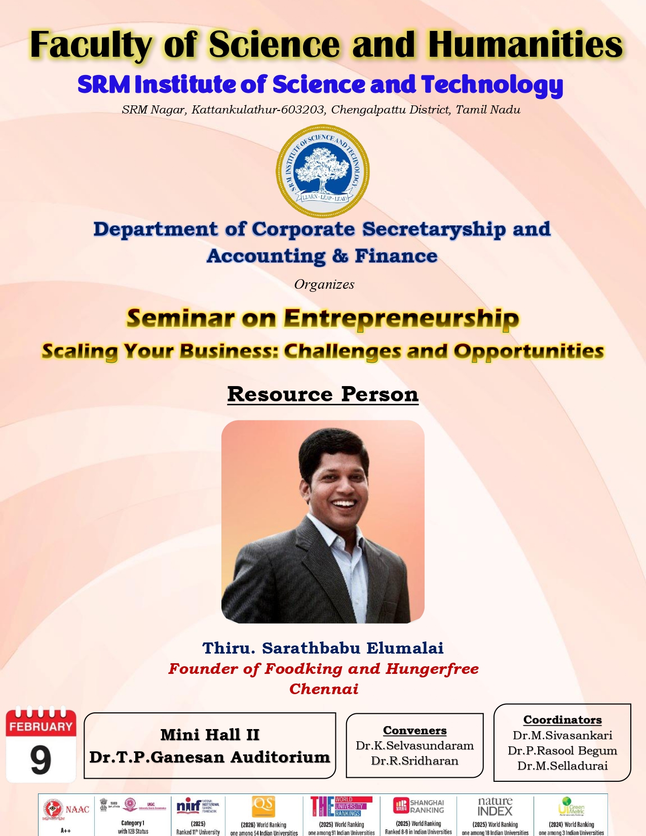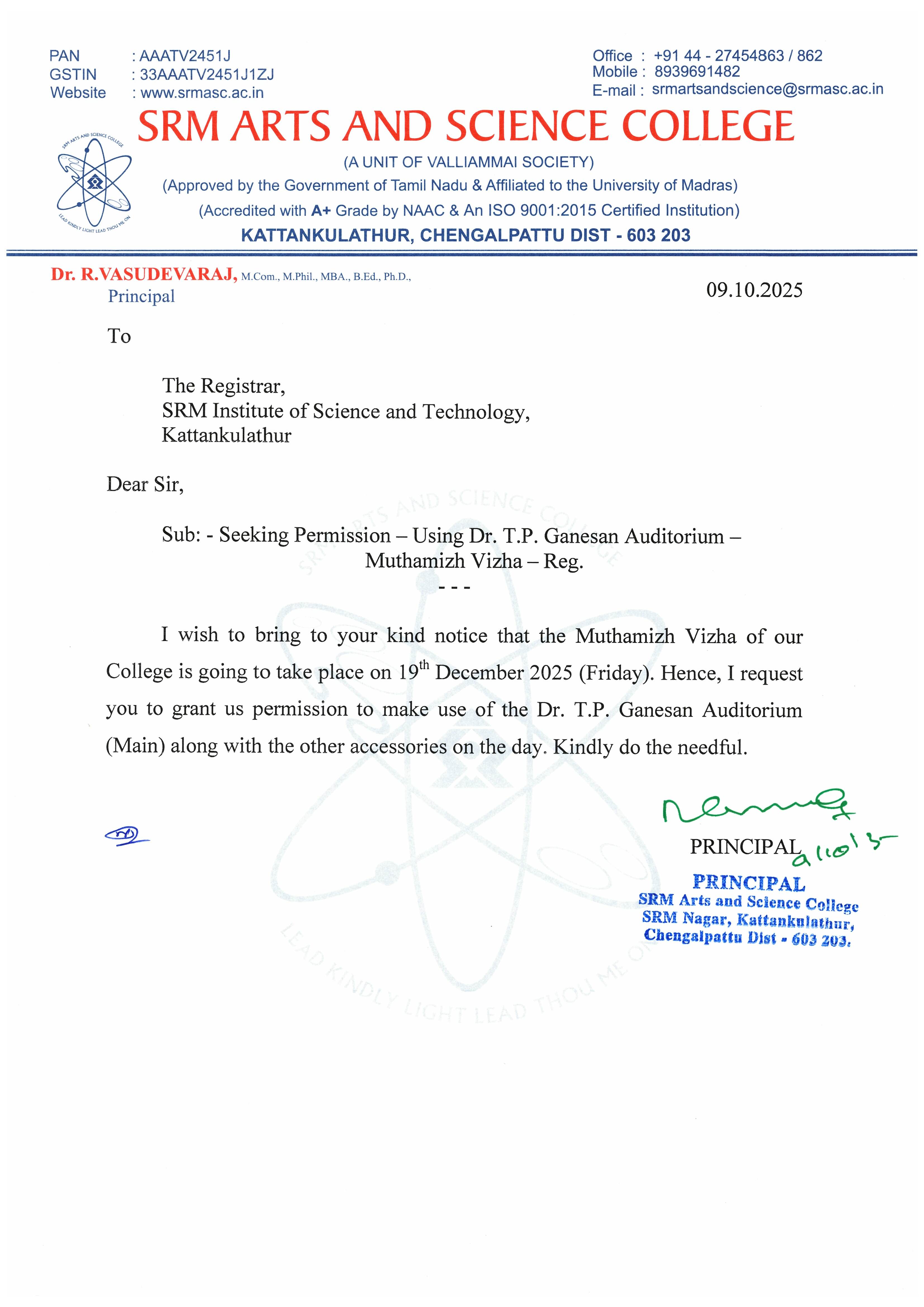 Located At: Dr. T. P. Ganesan Auditorium