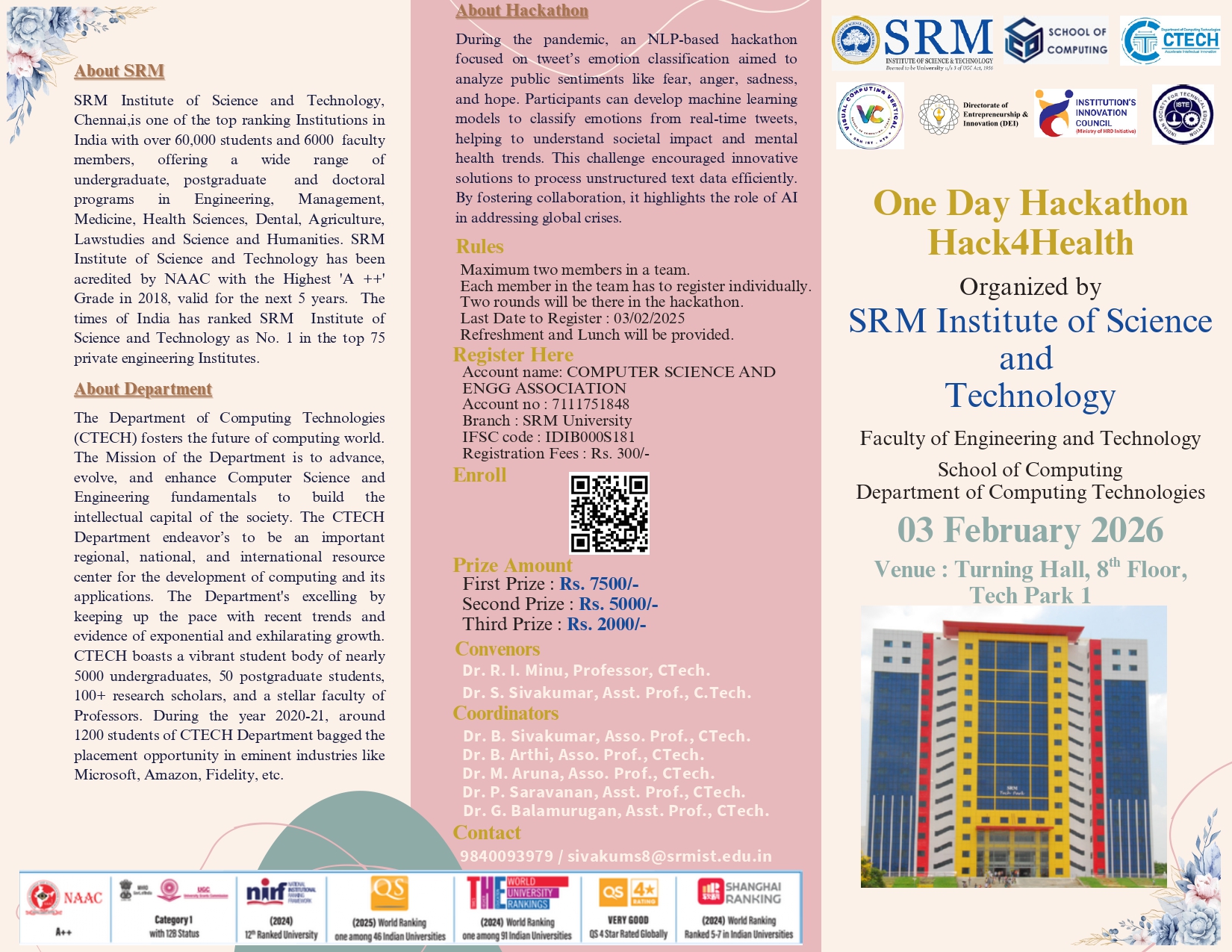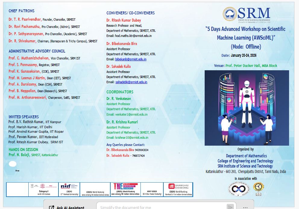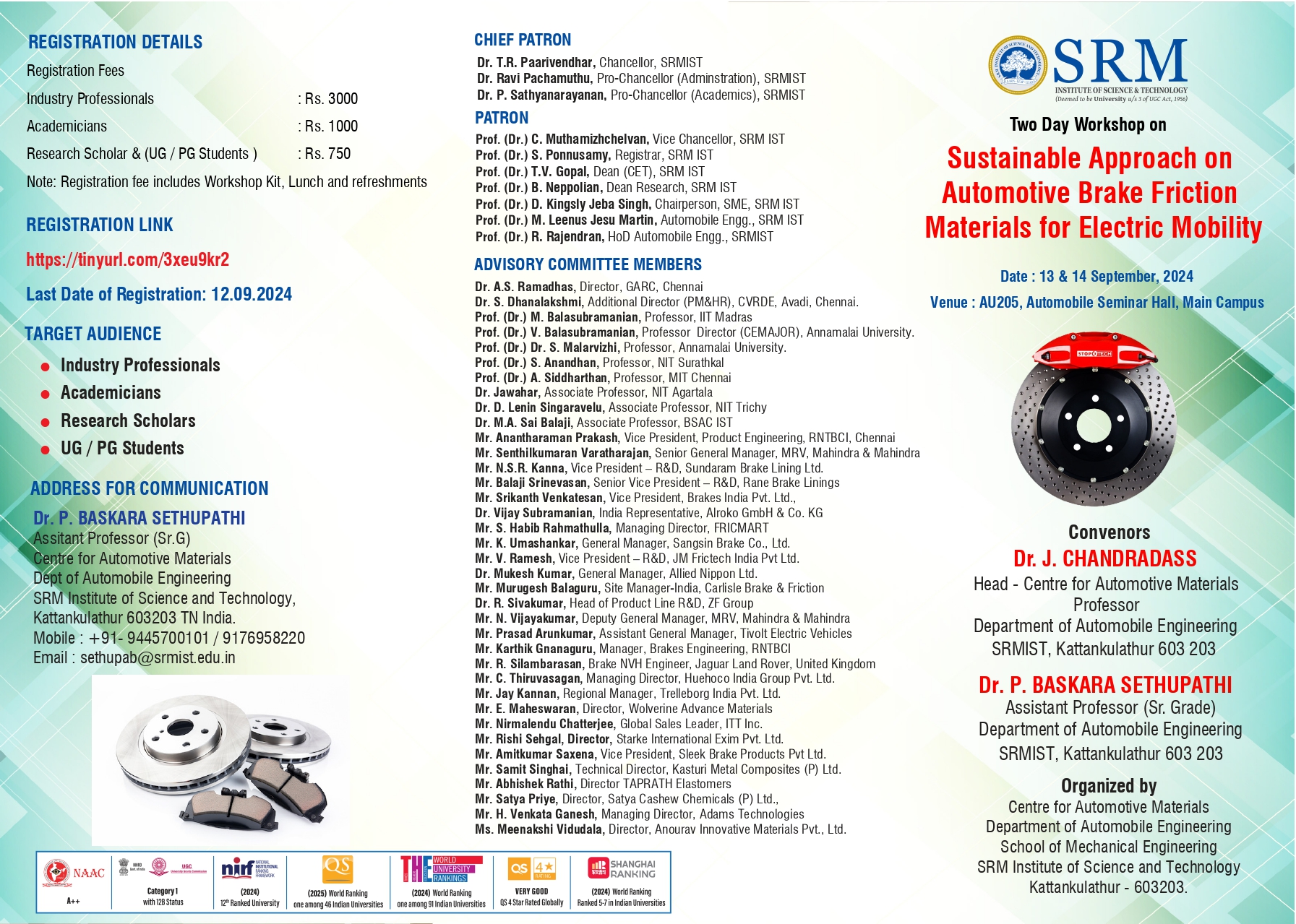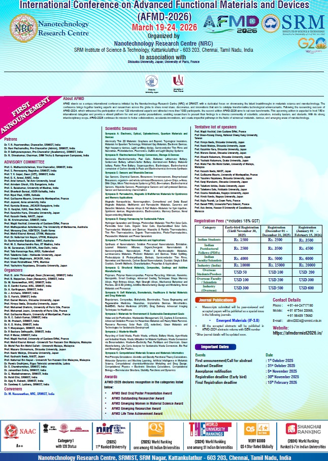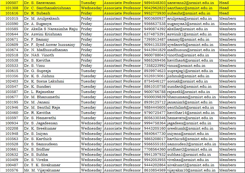 Dr. C. Selvam, selvamc@srmist.edu.in, 9003595904