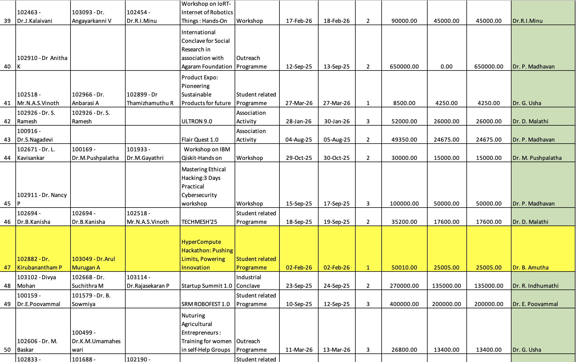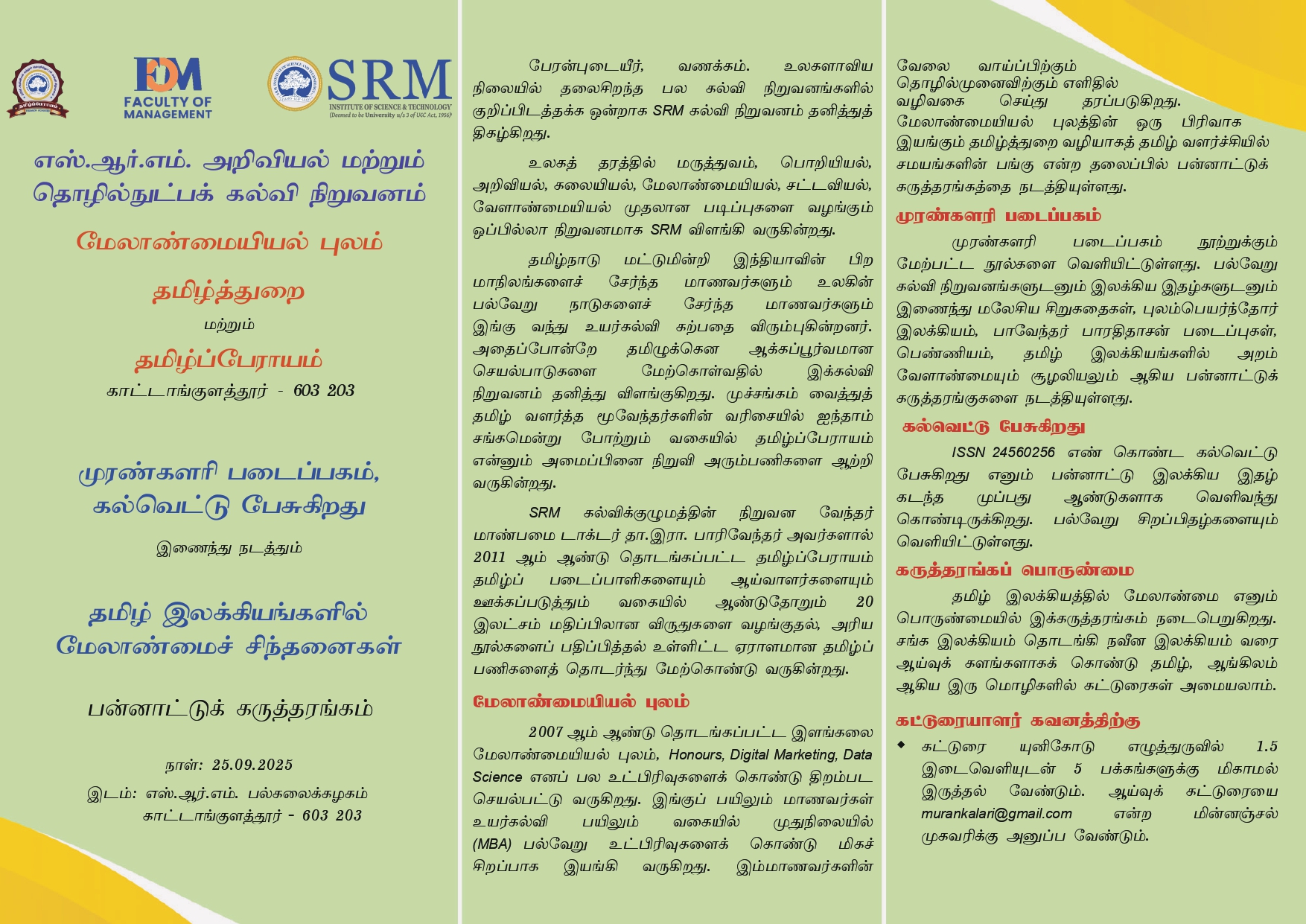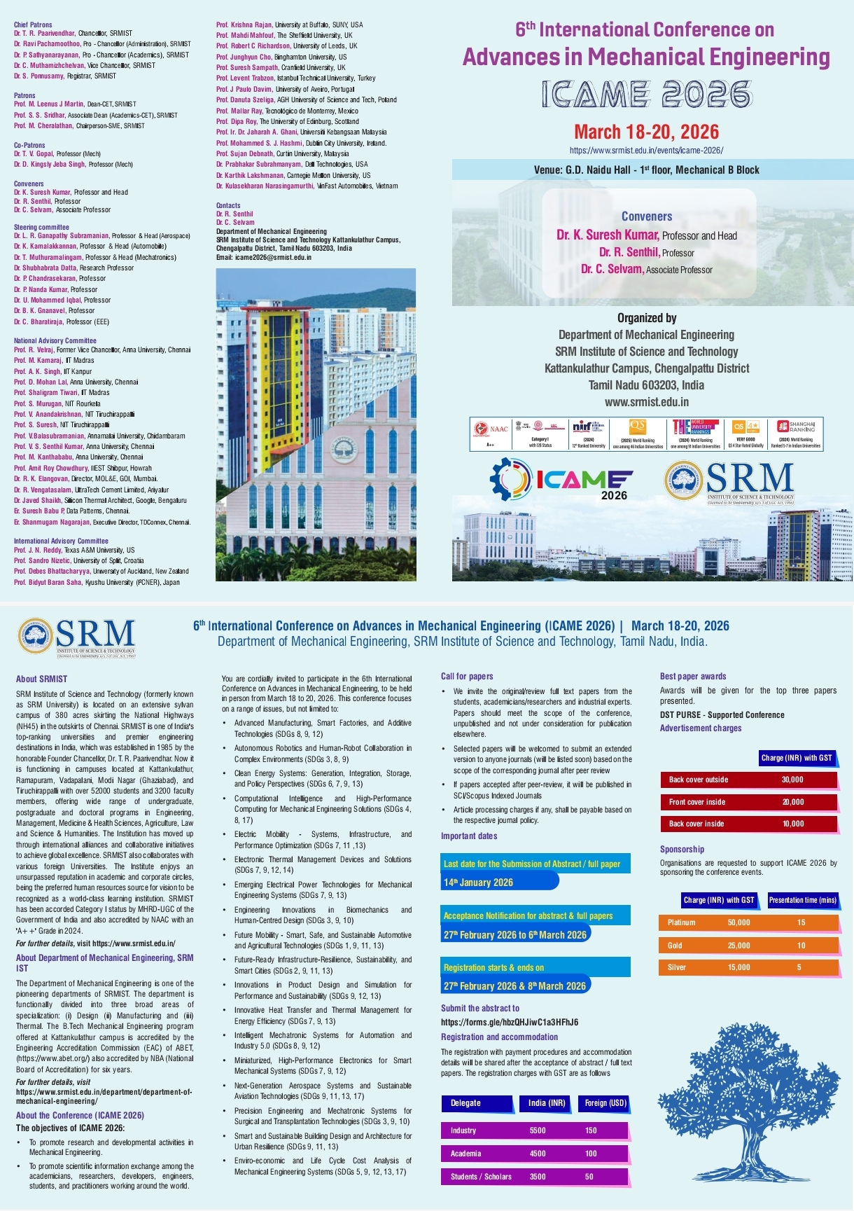 Dr. C. Selvam, selvamc@srmist.edu.in, 9003595904