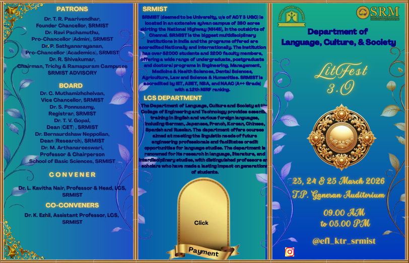 Dr. Ezhil. K, Assistant Professor, Language, Culture and Society, SRM Institute of Science and Technology