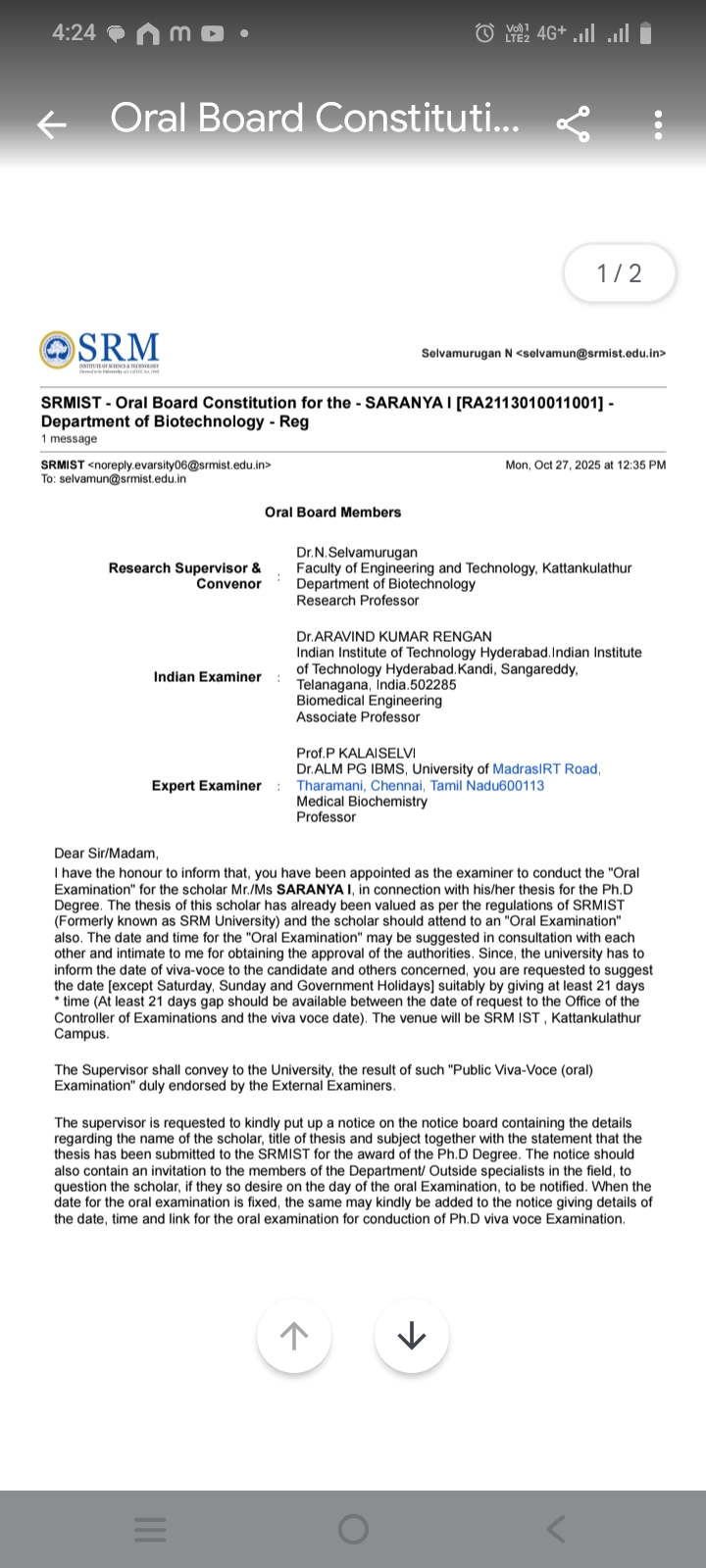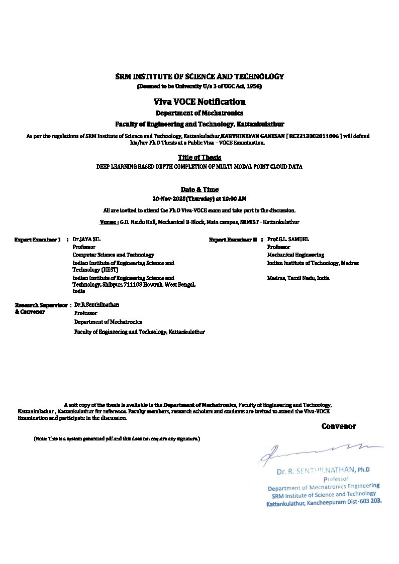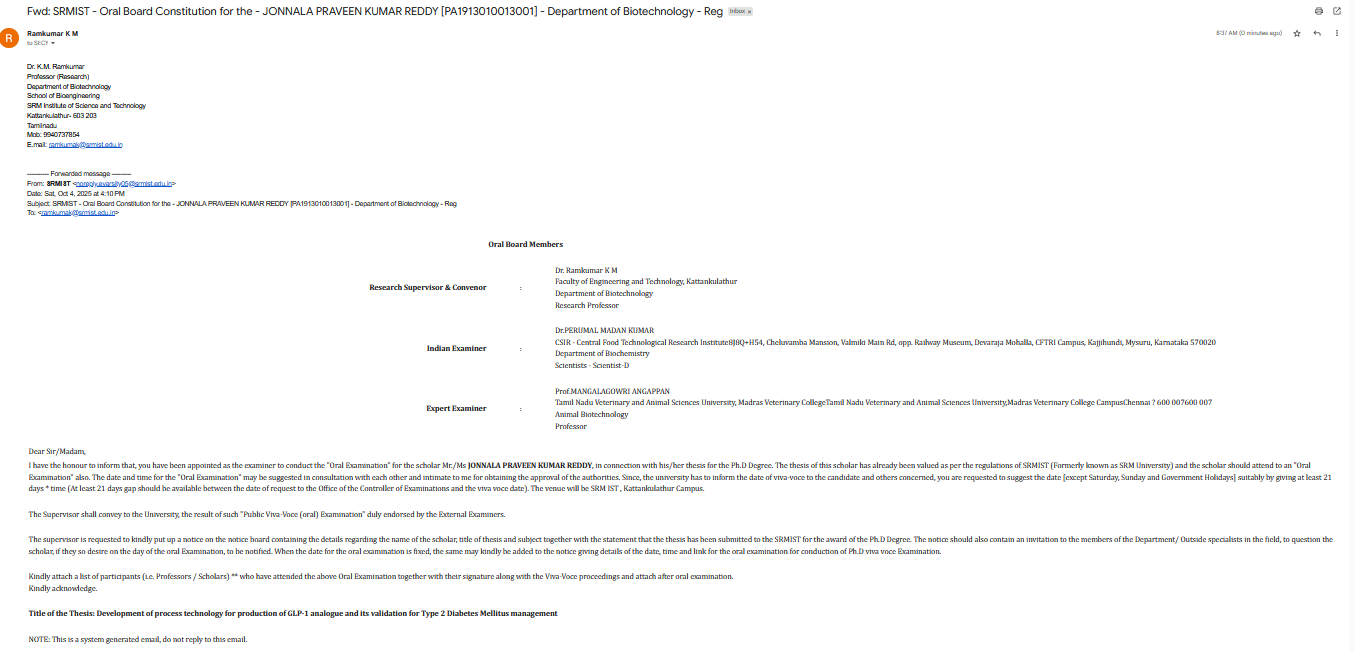 Ph. D. Viva voce - JONNALA PRAVEEN KUMAR REDDY - Guide - Dr. K.M. Ramkumar