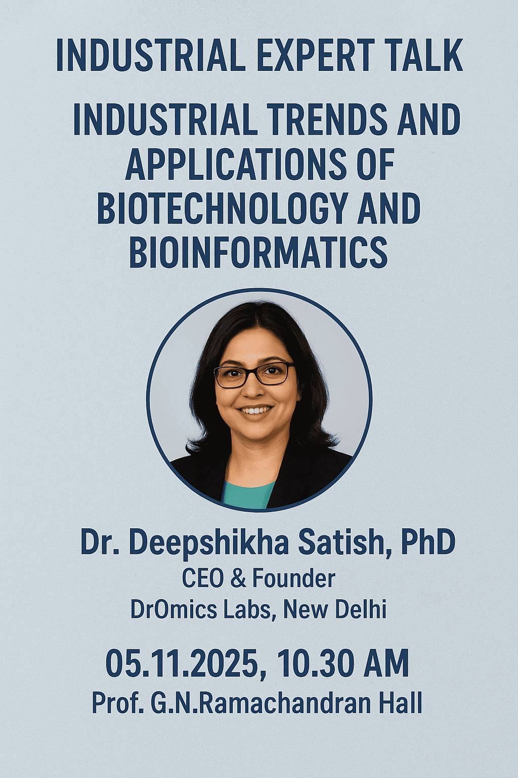 Place: Prof. G.N.Ramachandran Hall