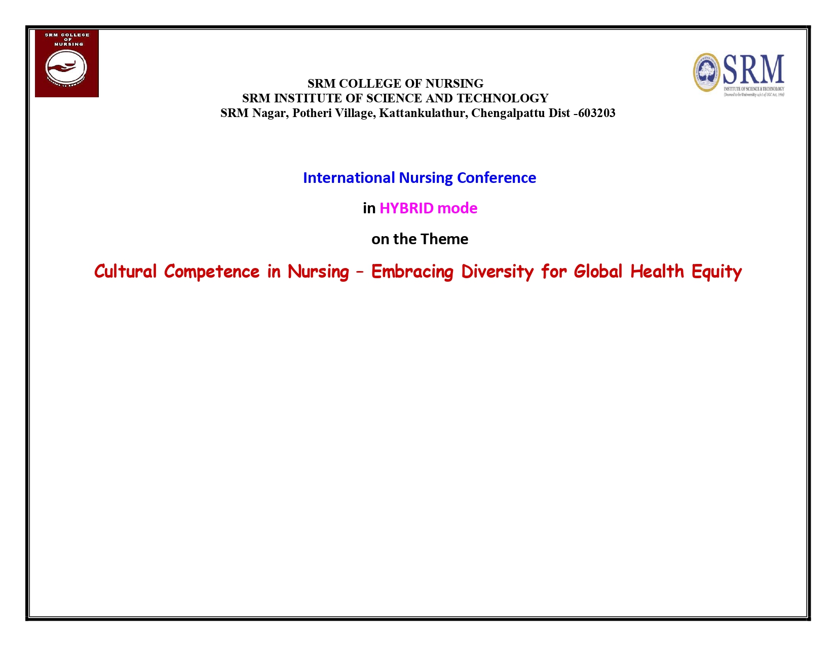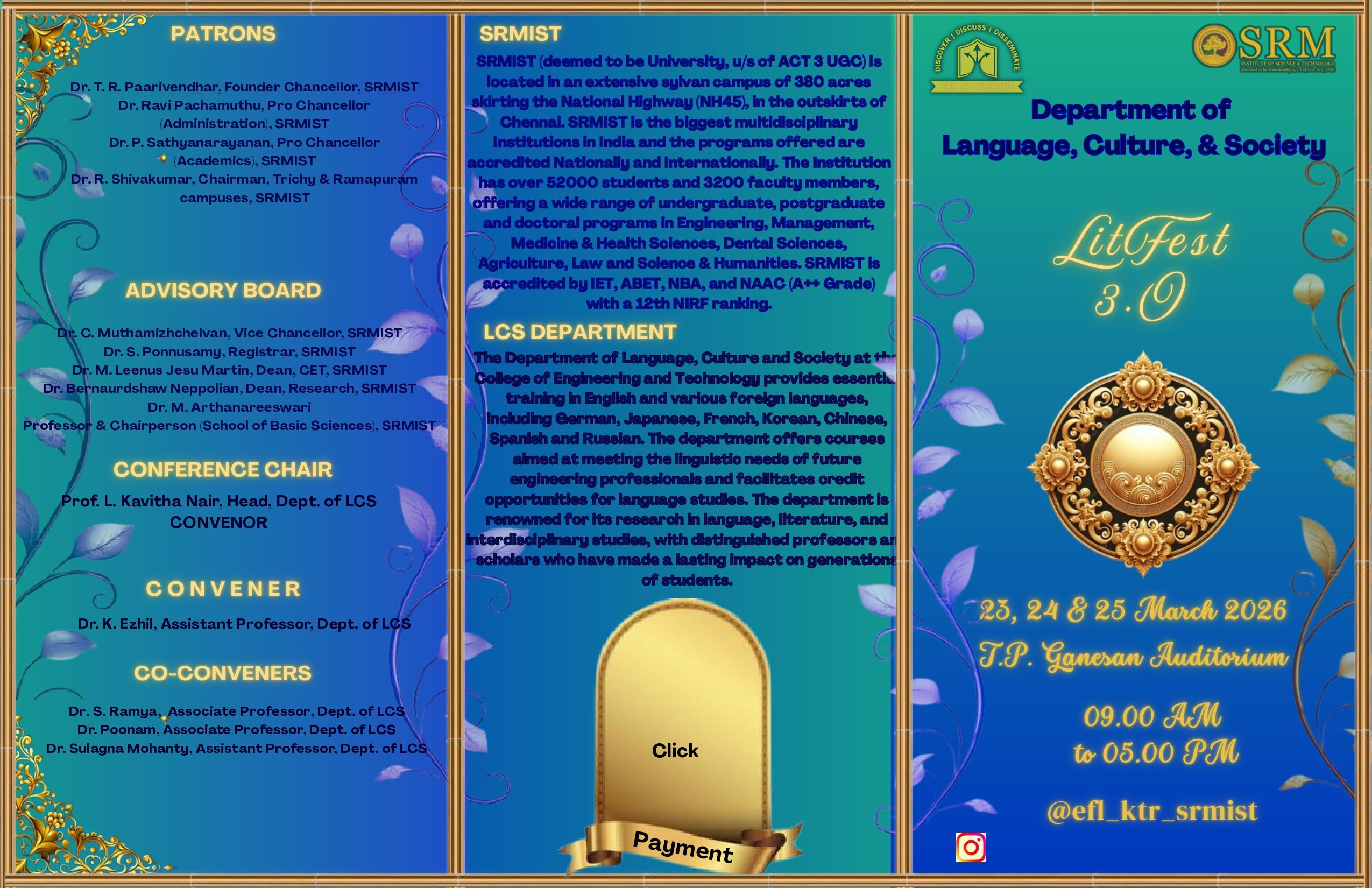 Prof. L Kavitha Nair Head - Department of Language, Culture and Society College of Engineering & Technology SRM Institute of Science and Technology (SRMIST) Kattankulathur, Chengalpattu (Dt) - 603 203 Tamil Nadu, India.