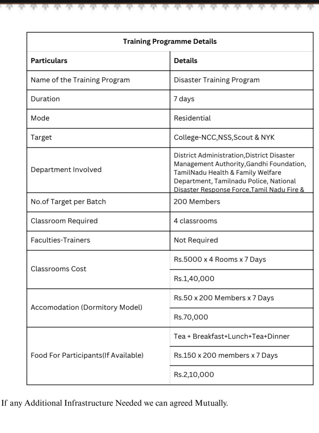 Targetted (College and School) Student Participation of College NCC, NSS, Scout and NYK