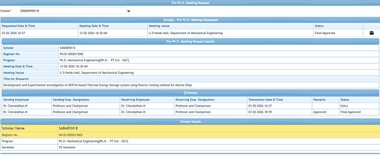 Pre PhD talk of the research scholar Mr. B. Sabarish [PA1813002013002] under the supervision of Dr. M. Cheralathan
